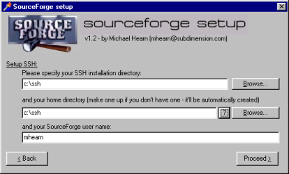 To install SSH we're going to use the SFSetup tool that is being provided by SourceForge. You can find the link to it on the SourceForge Setup page. At the time of writing this, version 1.2 was the most current, so I used that one.