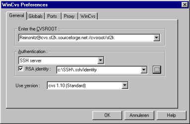 WinCVS needs to know where to find the public key you just generated and what it needs to do to logon. If SFSetup has done its work, most should allready have been added, but we'll check it to be sure.